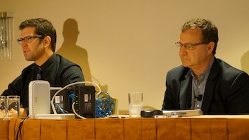 Ian Webber of the Rochester Institute of Technology and Peter Schott of Cengage Learning on the Enterprise Video Conference closed captioning panel."It became an enterprise-wide initiative," said Schott.