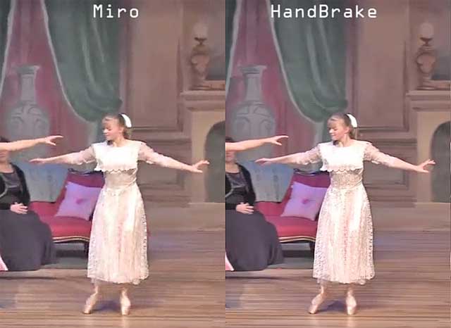 I liked that Miro converted my file to 1024x576, since the iPad only has 1024 horizontal pixels in landscape mode, but Miro was a mite thrifty when it came to data rate, encoding at 1.3 Mbps, compared to HandBreak, which encoded at 2.8 Mbps at the same resolution. Miro also used the Baseline profile with no CABAC encoding, while Miro used the High Profile, with CABAC. On extremely high motion clips, you may notice some degradation in Miro encoded clips.