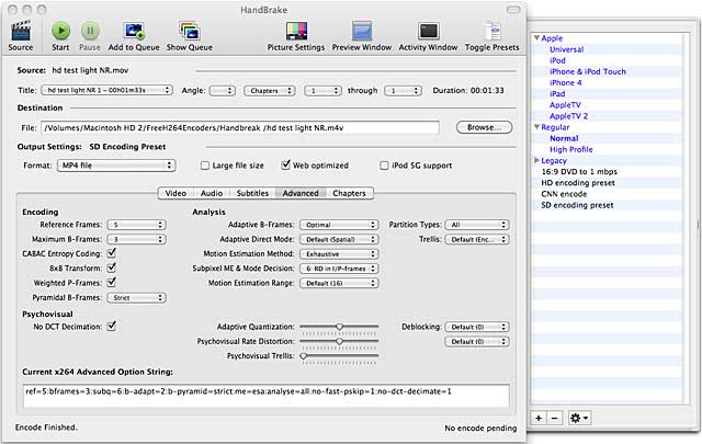 OK, so you're cheap and in a hurry and you just want the answer to a single question, "What's the best free H.264 encoder?" Well, you're in the right place, in this short review; I compare HandBreak, Miro Video Converter, MPEG Streamclip, and Apple Compressor 4. No, Compressor isn't free, but since it's now sold standalone for $49.99, I thought it worth a look.